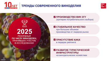 «Учитывая, что отрасль имеет длинный инвестиционный цикл, важна поддержка, и мы ее оказываем, – сказала Елена Фастова. – 300 виноградарских и винодельческих предприятий получают господдержку, в том числе 130 фермерских хозяйств: компенсируется часть затрат на закладку и уход за виноградниками, на материально-техническое обеспечение. В 2025 году было выделено порядка 4 млрд рублей, в 2026 году сохраняется не только эта сумма, но и все другие механизмы поддержки, в том числе льготное кредитование, лизинг, гранды, развитие сельского туризма, агрострахование, мелиорация». Е. Фастова назвала проект «Винный гид России» крайне важным и ценным ресурсом как для профессионалов, так и для любителей.