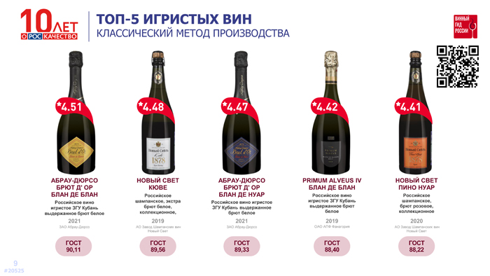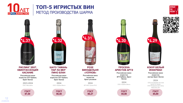 Руководитель Роскачества Протасов сообщил, что проходной балл в восьмой гид 2025–2026 поднят с 78 до 81, поскольку качество вин повысилось. Если в сборнике №1 2019 года образцов с оценкой 81 балл и выше было 16,72 процента, то в сборнике №8 2025–2026 гг. – 76,26 процента. А игристые вина впервые перешагнули порог 90 баллов. Всего в 2025 году исследовано 782 образца от 120 виноделен, что стало рекордом за все время работы над справочником. Еще одна важная новость: произошло резкое увеличение количества вин от малых виноделен – в два раза! Главную роль здесь М. Протасов видит в эффективности мер государственной поддержки и выполнении виноделами рекомендаций экспертов. Кроме лабораторно-аналитического исследования, Роскачество применяет физико-химические методы к винам, не соответствующим действующим стандартам. «Эту работу мы будем продолжать, выявляя причины проблем, и рассказывать потребителям», – сказал глава Роскачества.