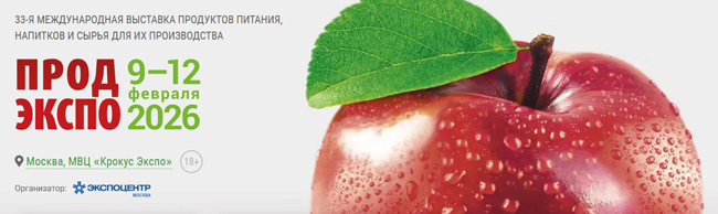 С 9 по 12 февраля 2026 года в МВЦ «Крокус Экспо», павильоны 1 (залы 1–3), 2, 3 (зал 17) пройдет 33-я международная выставка продуктов питания, напитков и сырья для их производства «Продэкспо-2026».